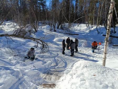 По рыбе - ставили 40 жерлиц на 4 человек. 20 штук на одном берегу. 20 штук на другом, где смог наст накатать.